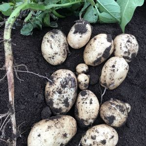 じゃがいも、残りの4株も収穫しました😍1株につき6〜8個でした🌟 間引きで残す芽を2〜4本で、多いと小芋になるとのことでしたが、、4本のやつが1番大きく多く収穫できました!🥔 かなり皮が薄くて皮が無いと言っても過言じゃない位ですが、こんなものなのかな?保存性があるのか心配です😂とりあえず乾かします🐶