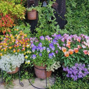 ビオラとアリッサムの寄せ植えが今頃もりもり💐です(*´∇`*)