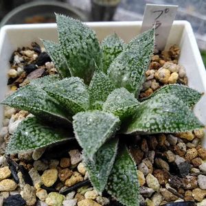 おはようございます😃少しずつ外が明るくなってきましたが今日も曇天の朝です。 picは22日📷のハオルチア39号🌵プラチナ🌵なかなか大きくならないと思っていましたが過去picと比べると育っていますね😁