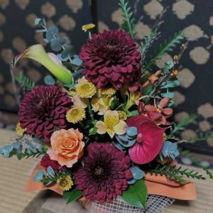 オレンジ 黄色で統一された アレンジ花(˶ᵔᵕᵔ˶)