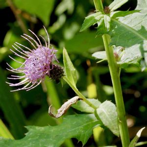 素敵なアザミ?に出会いました 雄しべの先の白いのは柱頭が押し出して出てきた花粉なのかしら 色も姿もとても美しい花でした サブレさんからホクチアザミに似ていると💬いただきました また確認しに行こうと思っています ヒメアザミと確認しました