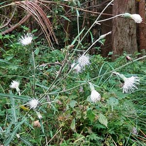 ヒメアザミ👸姫薊 キク科薊属 先月も投稿したお花です 秋色の林の中で 元気に咲いていました。 分布(近畿地方以西)~九州 草丈は1.5㍍程 お花の大きさ2㌢程