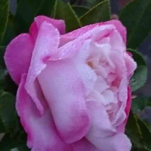 おはようございます☺️☘️ 夜露で花びらがびっしょり😥 朝倉よりもピンク色が濃いめ でも完全に開くと白花になります バラのような美しさがある子です😊 ピンボケでスミマセン😣💦⤵️