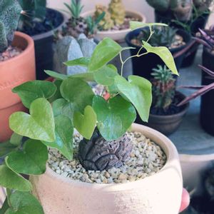 またまたユニバーサルファームにてゲト🌱 お初亀様ゆえ 置き場所考え中。。。 可愛いなー!まるこい塊根にハートな葉っぱ🌱 🌱たちの試行錯誤は楽しい。。。