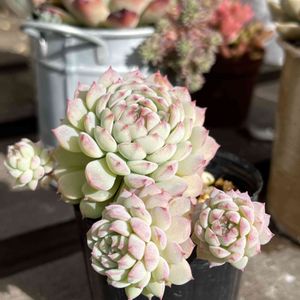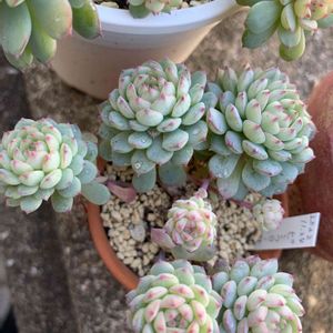 本日2post目✌️ 我が家のエケたちは、栄養分皆無の土に、夏もNO遮光でガンガン陽に当たり、冬も水切られて防寒もされないので… 強いは強いけど、色が白っ茶けて(←方言か?)毎度貧相で可哀想だなと思ってます😢 先日棚を新調したのは、遮光ネットや不織布を掛けやすくする目的もあります🤗 今年はしっかり遮光防寒してあげて、春に植え替える子たちは培養土も少し入れてあげて、みなさんのpicで見るような鉢からはみ出てなおかつコロコロキュッを目指します✨ pic② たかこさんからいただいたピンクローサ シワシワですが増えました💕 株分けしようか、鉢増ししようか💕 pic③ ラブリーローズも3枚の葉っぱからこの数まで増えて、ここからさらにたくさんお子が巣立っております✨ 水あげたいー😱 pic④ ペレスデラロサエピンクエッジ 日本花きさんからお迎えして、激減してからここまで持ち直しました😅 でも大きくならないなー こんなもんなのかなー