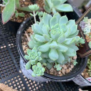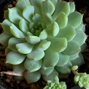 おはよーございます ついこの前まで暑い~暑いしか言葉がでなかったのに 涼しいを通り越して肌寒いです 秋はあっという間に…です エケちゃんの植え替えは、秋の方が良い⁉️ ん…せめて紙コップエケちゃんだけは鉢あげしなくては~😥 癒しの多肉がストレスにならないようにしてます 少しずつ少しずつ無理なくね😁 朝仕事に空っぽの鉢を少し整理しました ☆☆今日の一枚☆☆ リエールさん苗 ピンクローサ (グロブローサ×プロリフィラ) 我が家に来た時から何だかなーって感じだった 徒長してカット 頭部分はお☆様に😢 小さい子がわちゃわちゃ どうしたら良いかな