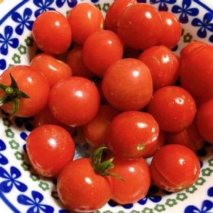今朝、雨の中☔️収穫。 割れてきています。よく洗って朝サラダ🥗 ピンキー(左のピンク色)は比較的割れが少ないです。 割れの原因は、雨と、収穫遅れかな?