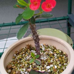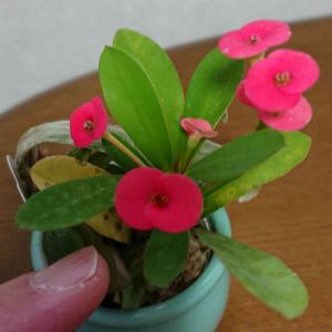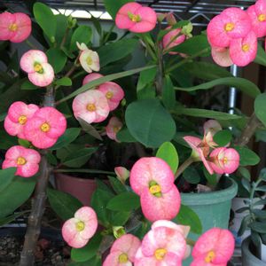 「はなきりん」 私の好きな花🌸今年も窓辺に満開に咲いてます😊💕昨年挿木した「はなきりん」🌸 これはトゲがなく、日に当たらないとグリーン色の花になる種類🍀😊