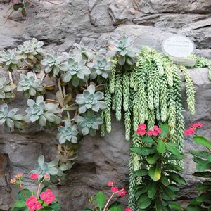 新宿御苑の大温室。 セダム、玉綴りが見事でした。