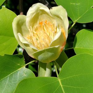 ユリノキ モクレン科ユリノキ属 落葉高木 北米東部原産 日本には明治初期に渡来。 別名は、ハンテンボク、レンゲボク、チューリップツリー、チューリップノキ、ウッコンコウジュなど。 街路樹や公園樹として世界各地に植えられている。 花期5〜6月 枝先に直径5〜6cmのお椀状の花が上向きに咲き、この花がチューリップやユリに例えられる。 花被片は9枚で、外側の3枚は緑白色の萼片状で反曲し、内側の6枚は花弁状で黄緑色を帯び、基部にオレンジ色の斑紋があり、直立して椀状になる。 果実は10〜11月に熟し、松かさ状の集合果を形成する。 晩秋から冬にかけて(今でも)最外輪の果実と花軸だけが残っていることが多い。 🏷️木曜日は木 に参加させていただきます。