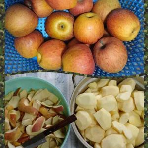 昨年の秋収穫したサン富士が 保冷庫に残っていたので コンポート作ります🍎 後残りひと鍋 せっせと剥きますよ🍴😋🍎 前回作ったコンポートは、しっかり 畑仕事の合間に いただきました🍴😋