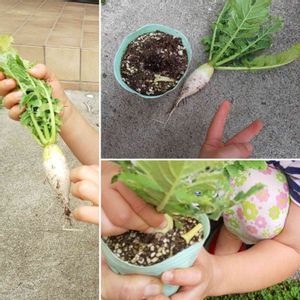 #GSforキッズ プロジェクトでいただいた、ちびちび大根。 とうとう、収穫しました〜〜! なかなか抜けなくて、子供と一緒に抜きました。 こんなに可愛い大根! 子供大喜び! ポットで育てても、きちんと大根の形になっていて、感動( •̥ ˍ •̥ ) 三太郎という品種、適応力すごいな。 秋からは三太郎、畑で育ててみたいです。 #GSforキッズ プロジェクト さま、素敵な機会をありがとうございました!