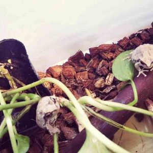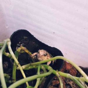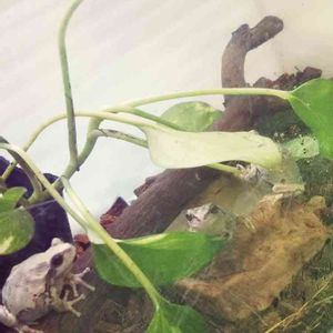 ベッカリーさんをフエゴ着生ボードにくっつけるにあたり、色々調べたら麻ひもやテグスとか色々でてきたのですが、板付けビギナーとして考えまして、ナイロンテグスで巻き付け、さらにホビー用タッカーで裏側から固定するという力業にでました😅 しかも苔がぼろぼろ落ちるのが嫌なのと、万が一の落下防止にガーデンソフトワイヤーで更に緊縛するという💦 今のところ順調そうなのですが、早く根っこが板に活着してほしいです。 うちのイエアメガエルのケロリウム🐸 排泄量が凄いので週一で掃除しています。並んでるの見るとやはり雌雄でサイズが違うのがよく分かります(カエルは基本♀の方が大きい)