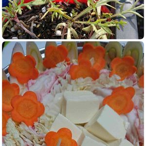 『花輪菊』 秋に種まきしたものです‼️ マダマダ寒いので定植は少し先にします👍 今日は作る気分ではないので 鍋にしました‼️ 味付けはキムチ味✌️ 後は適当なもので食べます‼️ 良かったら どうぞ召し上がれ😆👍➰ ミルフィーユの白菜も予備が沢山あるからね✌️