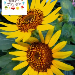 🌼庭の花🌼 【ミニ向日葵】 🌻🌻🌻🌻🌻🌻🌻🌻 普通は1本の枝に1つの花が咲く種類なんですがこの向日葵さんは双子(*^^*) ミニと言っても背丈は120センチ位はあります(笑) これってミニ⁉️⁉️ おはようございます(*^^*) 昨日、ふと気付くと 日が暮れるのが早くなっているわ😨 少し前までは19時でも明るかったのに😅 しかし暑さはまだまだ残暑(T_T) 早く涼しくなって欲しいなぁ(*^^*)