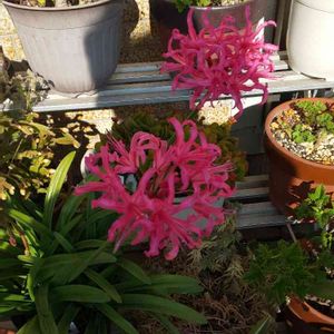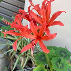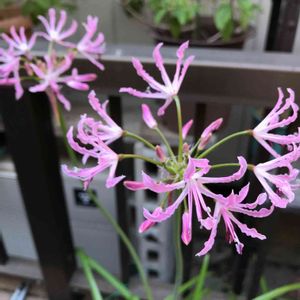 お隣さんのお花💕 うちにも分けてくれました🎵 名前がわかりませんでしたが、 ネリネ(ダイヤモンドリリー)と教えていただきました😊 ありがとうございます✨