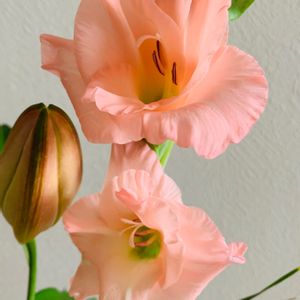 優しいグラジオラスとユリのコラボ☺️✨ お仏壇の前でいい香りが(∩˘ω˘∩ )♡ 母も綺麗って喜んでるかな🌸✨ 今日も頑張ろっ(*•̀ᴗ•́*)و ̑̑