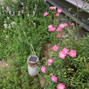 ミニバラほほえみも元気モリモリです。 花後バッサリ切り戻しする以外はほぼノーメンテナンスです。 奥のタイムは、雑草並みに繁茂中w
