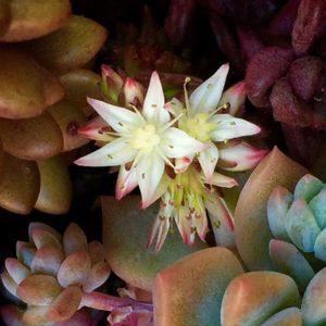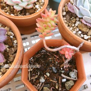 ホムセンで、セダムとして売られていた 🍂グリーンペット(バテシィ) ビラディア属 センペルビヴム亜科のセダム連のビラディア属なので 広くはセダムの仲間なんだって💦 ややこしい 笑 新芽部分は明るくなったが、これが紅葉なのかな?