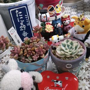 おはようございます😊 昨日は、昔治療した銀歯が折れ、歯科に行って、帰宅した時、玄関先に重ねて置いたトレイにつまづき、ひっくり返してしまいました😱😱😱 ほとんどが、寄せ植え😭😭😭 もう、夕方だったので、早く片付けるには、大きめの鉢に移すしかない🤣 使ってなかった成瀬さんの4号鉢💕 くるみ*さんグッズもちょっと入れて、何とか形に😄 先日、月の雫さんから届いたピータンたちも遊びに来てくれました💕 昨日届いた、草呂木さんの苗が1つ足りない🤣こんな事はなかったのに。 嫌なことが、重なってしまい、夕飯の時に息子に話したら、 「大事な鉢が割れなくて良かったね」 「そうだよね」 いつも、ポジティブな一言に、救われます🥰✌️ 今日も、宜しくお願いします🌿