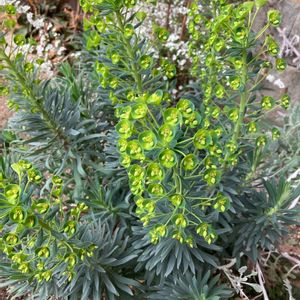 10月末に植え込んだお店の花壇が モリモリしてきてます🌿 冬の日当たり大好きなヒューケラさん💚 黄緑色のパンチ👊効いてて好きだなあ かわいいメルヘンコーナー🐇🐈🕊です