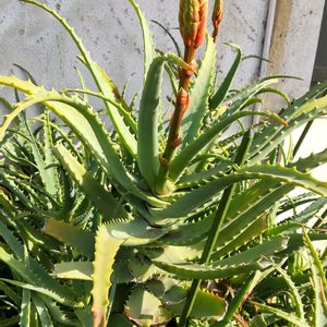 立派なアロエがあるお店の花壇。蕾❓️アロエ花咲くの❓️ 調べたらやっぱり蕾みたいです。花が咲く頃に また見に来よっと😃楽しみ💖