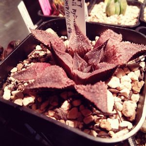 ハオルチア(鬼夜叉)です。 葉やけ気味なのか、赤味がでてます。。 来年度は年号も変わるみたいだし、何かをしたいな!
