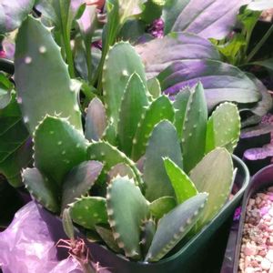 ハオルチア(ドドソン紫オブツーサ)です。 脇芽が出るわ、花芽も上がってくるわ? ...型崩れしてますが、...色も焦げた感にありますが、何とか5ヵ月を経過。。 カキコ苗が(たくさん)できそうな予感ですが、増やすのも大切ですが、綺麗な苗にしたいな。。 色々なブログを見させてもらうと、この繰り返し(脇芽が出るわ、花芽がでるわ)が普通みたいだな。。 当面の目標は、成苗までの(栽培環境)と、、綺麗な苗に仕上げる(条件があれば)のだな、、。