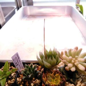 ハオルチアです。 瑞晃竜(胴切りからひと月)さんと、北斎錦(購入から2週間)さんを移植予定です。 割りと良い感じの不定根(ひげ根)が出ています。。 置き場所を確保する為にはもう少しオークションで里親探しをしたり、中段を整理したり、、。 ワイデルスリビエルのカキコした株は発根が遅れています。やはりそこそこ大きくないと(根が出る基部が出来上がらないと)、、根が出にくいかな? 少しだけ根が見えています。。 今日は瑞晃竜に北斎錦の植え込み予定です。。v2.7 ※干す→発根の誘導→「移植」→1週間くらい安置。→水やり。。