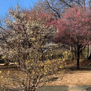 咲いた、咲いた、◯◯の花が 並んだ、並んだ、赤、白、黄色・・・ チューリップではなくて、紅梅、白梅、蝋梅の花が咲いた! 前橋大室公園にて 2/6