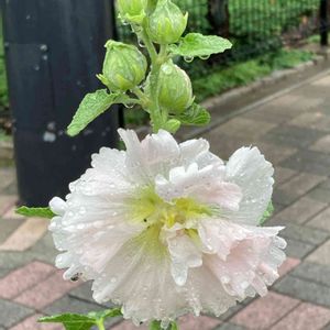 YSお出かけ🍀 🏷金曜日の蕾参加🙇♂️ タチアオイ🤍2022.8/4.10:53撮影 別名・オオアオイ,ツユアオイ アオイ科・アルケア属,タチアオイ属 昨日免許更新にサメズまで,行く途中咲いてました。免許証のpicを数年後に見るたびに老けていく自分に落ち込みますね〜🤣