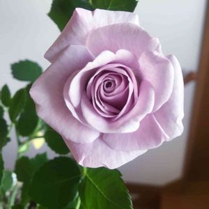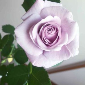 スーパーのレジ前にある花屋さんをふらっと除くと、床に黒いトレーで大量に固めて置いてあるミニバラを発見! 近寄ると、モーニングブルーと、テディベアさんでした(❁´ `❁) しかし、どれも茎が細く、葉は汚れや枯れでボロボロな上水不足なのか、ふにゃふにゃに垂れ下がり、その葉を無理やりビニールパッケージで押し上げている様な状態でした…(´;ω;`) おそらく、そろそろまとめて処分しようとしていた模様です。 そんな状態なのに値下げは一切されておらず、結構お高め…๛(ー̀ωー́ก) 悩みましたが、モーニングブルーさんを1苗救出しました( ¯−¯ )b✧ という事が冬にあった出来事です。 月日は経ち… 今朝、見事なお花を見せてくれました!\( ˆoˆ )/♡ 1度全てちぎり落とした葉も一杯に茂りました♪ これからも元気に育ってね♪( 。ˆωˆ。 )♪