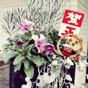 カラーリーフは春から育てていたものを使い回した節約寄せ植え お正月ピックをたてて
