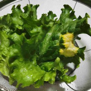 相談ですm(_ _)m 4月末頃に植えたリーフレタスの苗もどんどん大きくなり、今日は外葉を収穫していただきたいと思います‼️ありがたやです💕 でも、1ヶ所だけ色が白い部分があります。全体に広がってしまうのかなと心配でしたがここだけで他はなんともありません。 これはなぜ、ここだけ白く色が抜けてるのしょう?わかる方いらっしゃいましたら教えてください❕よろしくお願いします。