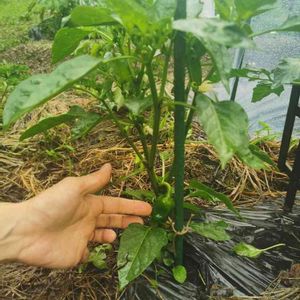 ようやくピーマンの花が咲いてくれました❗超初心者の私は、まだ霜注意報がだされる最中にピーマンの苗を植え付けしてしまい(^_^;)だいぶ寒さと闘わせてしまいました!! そのせいか生育が遅くて心配でしたが、ここ最近ぐんぐん大きくなってきています✨よかった💕