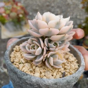 ✨マカベアナ錦 エケベリア わが家に馴染んだのかな?😍🎶⤴️ 薄っすらピンク色🩷‼️ ルノー様は☆になったけど〜〜〜😢 このコは元気💓\(^o^)/💕🩷 自分へのクリスマス🎁で迎えたコです🥰