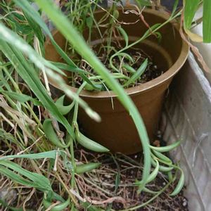 我が家のグリーンネックレス(三日月ネックレス?) 枯れたと思ってたのに、雑草の下で生きてた。 ここから出すとたぶん枯らすので、見たいときは雑草をめくります。😅