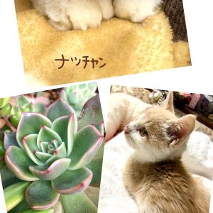 💚雨にも負けず💚 多肉のミラ 2階バルコニーで頑張っています。 我が家の🐈 ナッちゃん前足🐾のみ キーチャンは、毛の色が濃くなってきました。 ニャンニャン祭りに参加させて下さいね〜 🐈💓