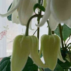 この前見つけて連れて帰った クレマチスアンスンエンシス 蕾が付いてきてます♪ ベル咲きクレマチス 先進むとグリーンから白に変わるのかな🤔 花のない季節にありがたい✨ 冬に花を咲かせる常緑クレマチスです。