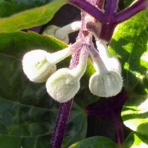 アンスンエンシス🔔 可愛い冬咲きクレマチス 葉っぱの上に甘い蜜をたらしてました