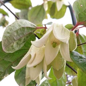 冬咲きクレマチスのアンスエンシス(アンシエンシス)が咲いてきました。 旺盛に茂るので、コントロールが必要なつる性植物ですが、冬の白い花は雪をイメージさせ、季節を感じさせてくれます。 ベル型の小さな花が可愛らしい♪・ メジロが啄みに来る時もあるんですよ!