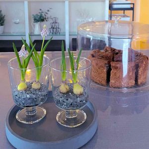 昨日、🍾ボトルにさしてたケーキを型から外し、お茶しました。 ムスカリがあまりに可愛いらしいので、しばらくダイニングで眺めながら♡ 部屋に一足早く春が来たようです。 暖房で暖かいせいか、花があっという間に出てきて… 明日には4つピンクの顔が並びそうです。