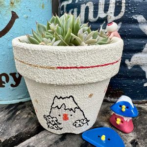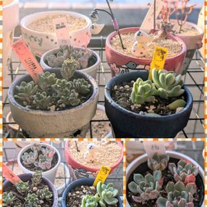 とっとり花回廊の多肉寄せ植えWS行って来ました😄 鉢持ち込みのWSだったので自作のリメ鉢にモリモリ詰め込みましたよ✨ このWSを教えて頂いたGSの花友さんにも初対面👀✨顔知らないのにね、GSでの投稿からこの方かな🤔と声をかけたら当たり🎯逢えてお話出来て嬉しかったです😆⤴️💓 ②🏷️毎月13日と14日は葉挿しの日🌿 なかなか大きくならなかったサブセシリスがこの夏めっちゃ大きくなりました🎵 確か…3年くらいかかってこのサイズなんだけど💦 ③KOWサン♪月の雫サン♪のハロウィンセットGET出来ました❤️ 鉢もピックも多肉ちゃんもみんなめっちゃ可愛い~🤩 ④購入記録🌿 ハニーミントさんの苗ポチリました🎶 6苗と土と肥料のセット 立田錦と斑入りリトルゼム 多肉狩りの予定もあるのに…我慢出来なくてポチリ💦 ⑤パンクチュラータのお花が咲いてました✨でも葉の色と同化してて…なかなか気が付かなかった…🤣