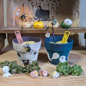 🏷️ハロウィン月間 🏷️みんなでハロウィン 🏷️KOHさんのリメ鉢 我が家にも届きましたぁ💓 KOHさんのハロウィンリメ鉢セット🎃👻🕷 目出度くgetでき、またまた何を 入れるか迷っちゃうけど宝物増えた😻 今回は多肉ちゃんもセットでおもちと だるま姫秀麗×スプリングワンダー🍀 おもちはKOHしゃんが育てると こうなるのかと思った位おっきくて びっくり😸 うちにもあるけどダルマ秀麗位なのよ💦 雨ざらしで育てたみたいだから、 私も頑張ろう💓 リメ鉢もピックも色合いや手の込んだ 作業にうっとり😻 写真下手でゴメンニャサイ🙏 Xmas版も今度あるみたいだから 目を光らせておかなきゃ👁✨ 素敵なリメ鉢&ピック、沢山の多肉ちゃん ありがとうございましたにゃん😺 くれぐれも根詰め過ぎないようにね🍀 syamu日記📝 今日もごろごろしてて4時過ぎに 出てちょっと作業💦 気持ちは焦るけど体がついていかない😽