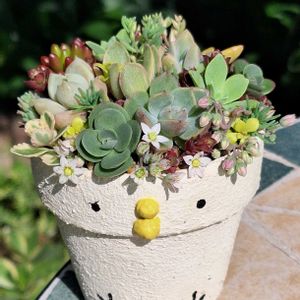 おはようございます☀ 今朝も爽やか😊 🏷️毎月2日はスヌーピーの日 🏷️ちょこんとピータン 🏷️ピータンの日に参加します。 ①KOHさんのオヤジおぼうぼピータン鉢にやっと植えました。 ハゲたりオバQになったり、地植えでもOKな七宝樹さんに決めました。 オヤジ祭りにもこれから参加出来るわ😊 月の雫さん、KOHさんのピータン達と、スヌーピーさんと一緒に💕 ②fumi fumiさんのリメ鉢、リメ缶に植えた多肉さん達とても順調に育ってます。