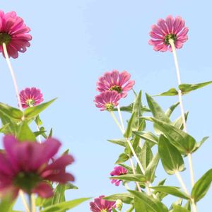 庭の🌸百日草(ジニア) 空に向かってグングン⤴️私の身長を追い越して💦もはや下から見上げるしかない😅 どこまでぇ〜(*'▽'*)