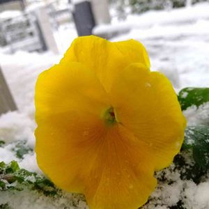 おはようございます😊 雪の中のパンジー💛 今朝起きたら一面の銀世界でした☃️ しかも吹雪いてる🥶🌀 軒下組も全部雪の中❄️ とりあえずお花が見えるようにしてあげました😅🧤 雪国のみなさん、 どうかお気をつけて🤗 今日も1日元気に過ごせますように🐻❄️