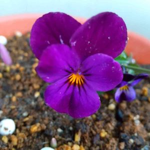 実家でひっそり咲いていた 軒下のビオラ💜 畑は雪で真っ白だけど 勝手口の下で見つけました🥰 寒さと雪に負けないで⛄️ わが家のパンジーとビオラは 長いお休み中です😪