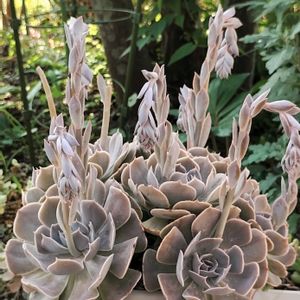 スワンレイク 大きな株になりました お水もらってパッカーンと開いてます 花芽が凄すぎ ✂です 葉挿し放題😆