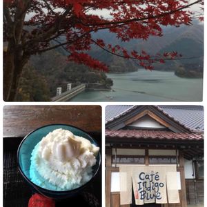 奥多摩 「Cafe Indigo Blue」 奥多摩湖を眺めながら まったりとღ˘◡˘ற♡.。oO 敷地内にある真っ赤な紅葉と 青々とした湖のコラボは 絶景です🍁✨ いろんな種類のソフトクリームが あります🍦💕 軽食もできます🍴 車で行く場合、道と駐車場が 狭いので、お気をつけて!!